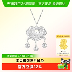 明牌珠宝足银长命富贵锁平安喜乐宝宝锁吊坠纯银饰品项链周岁礼物