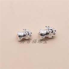 999足银貔貅宝宝3D隔珠饰品首 DIY编绳串珠手链项链吊坠材料配件