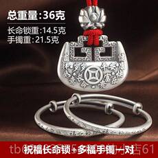 宝宝银手长镯99gkl87899纯银命锁婴儿银锁满月童镯子生儿新银饰礼