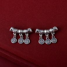纯银999十二生肖转运珠隔珠立体3D硬银本命年diy配件宝宝编织横穿