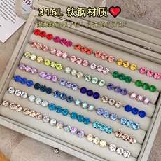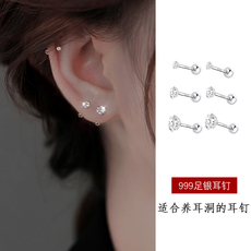 S999纯银耳钉女锆石耳钉钻石养耳洞睡觉免摘耳骨钉爆闪耳蜗钉耳饰