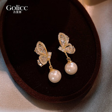 金色蝴蝶锆石珍珠耳坠耳钉女2026新款耳饰轻奢高级感气质秋冬耳环