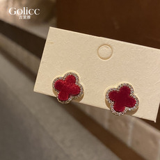 红色丝绒幸运四叶草耳钉女2025年新款爆款高级感耳饰精致小巧耳环