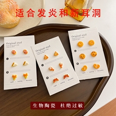 防过敏生物瓷耳钉女烘焙面包陶瓷针养耳洞耳环医用级学生防堵耳饰