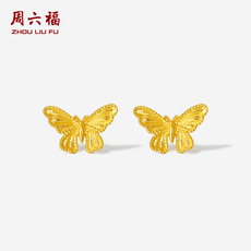 明牌珠宝5G黄金蝴蝶耳钉 足金镂空翩然蝶耳饰简约女士耳针AFH0313