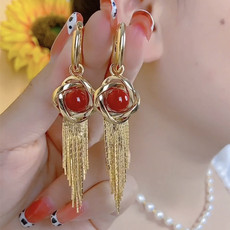 南红耳饰女水晶玉髓翡翠宝玉石散珠子新中式耳环红色玛瑙玄学耳钉