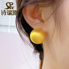 5D黄金拉丝球球耳钉女999足金珠珠耳环个性新款金珠耳饰纯金礼物