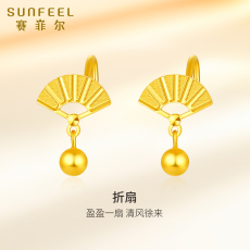 赛菲尔黄金耳饰足金扇子耳钉5G黄金耳坠小金珠耳吊送女友生日礼物