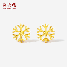 赛菲尔黄金耳饰女5G足金小雪花耳钉车花绕丝送女友生日礼物