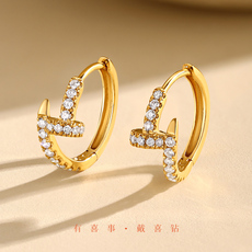 韩国时尚14K黄金耳钉女 镶钻字母螺纹螺丝耳饰通体K金养耳洞单只
