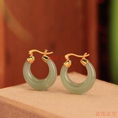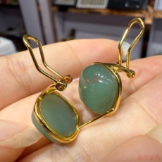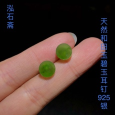 和田玉碧玉耳钉亲宝水晶天然苹果绿碧玉耳坠玉石耳饰女饰品