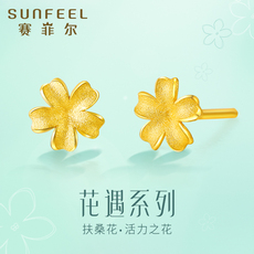 赛菲尔黄金足金999.9耳钉芙蓉花百搭耳饰珠宝首饰送女生节日礼物