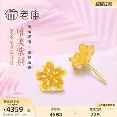 老庙黄金足金999紫荆花耳钉耳环樱花桃花古典耳饰送礼官方礼物