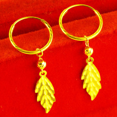 赛菲尔黄金耳环耳圈足金999.9耳钉叶子耳钩树叶耳饰时尚百搭送礼