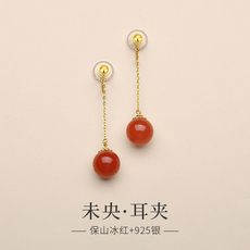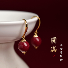 保真正品朱砂耳钉红色耳饰气质中国风耳坠耳环简约百搭喜庆首饰品