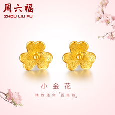 周六福黄金耳钉女足金耳饰耳环珠宝耳针迷你小金花气质设计高级感