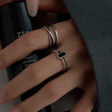 KANSAI情侣麻花开口设计四件套装戒指冷淡风酷潮指环可调节手饰品