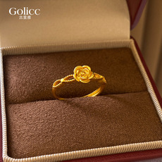 古法沙金花朵开口戒指女2026新款爆款小众精致食指戒巨好看的指环