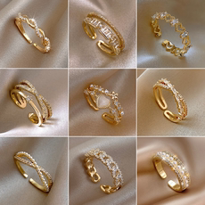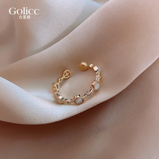 金色贝壳锆石素圈开口戒指女款轻奢小众设计食指戒独特高级感指环