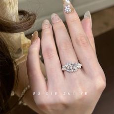 如蝶在野 超闪水钻开口戒指2024年新款潮小众设计食指戒时尚个性