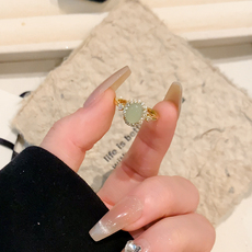 铜镀银戒指女轻奢高级感仿绿玉髓鸽子蛋戒指女小众设计开口食指环