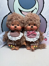 日本正版monchhichi 蒙奇奇 甜棕卷毛 软体 格子围兜 S号 公仔