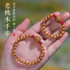 新款桃木木质手串女款本命年保真平安转运朱砂手链男士盘玩礼物