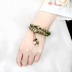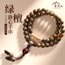 天然绿檀木双圈手串女款手链补木静心檀香盘玩佛珠和田玉转运珠