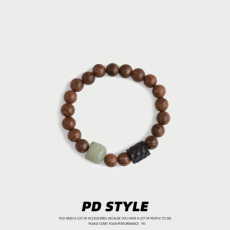 PDSTYLE 檀木小醒狮弹力绳手串男女生个性玛瑙文玩串珠手链配饰潮