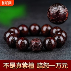 小叶紫檀貔貅手串男佛珠文玩手链木质手把件十二生肖招财貔貅雕刻