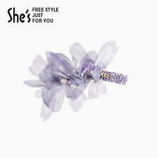 shes茜子莫奈印象浪漫薄纱花朵边夹刘海夹轻奢高档鸭嘴夹发饰夹子