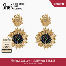 shes茜子梵高向日葵原创手工钉珠矿彩水晶大耳环复古耳钉耳饰女
