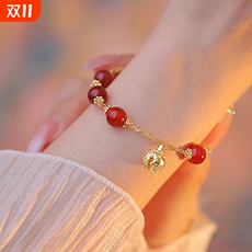黄金招财貔貅手链女款转运珠手饰天然红玛瑙石榴石手串送女友老婆