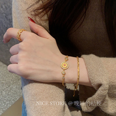 晚睡的桔梗「岁岁平安」古法拉丝镶钻如意平安扣手链新中式手饰