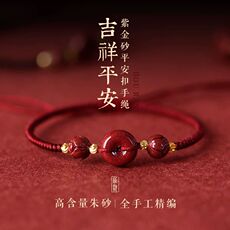 朱砂平安扣红绳手链紫金砂面包扣本命年男女儿童保平安转运珠手串