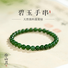 天然和田碧玉手串俄料原矿玉石碧玉菠菜绿素圈晴水串珠手链女真品