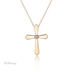 日本制 1分天然钻石个性十字项坠10K黄/不含项链