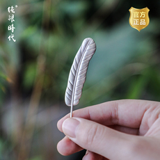 纯银时代 羽毛茶勺茶匙纯银999手工仿生茶拨茶则高档茶具配件送礼
