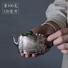 纯银时代木把竹韵泡茶银壶竹节足银999手工银茶壶精致送礼120ml