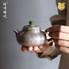 纯银时代 南瓜摘泡茶壶纯银999手工一张打银壶杨松柱制防烫140ml