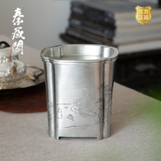 纯银时代 泛舟錾刻建水足银999中式纯手工水盂水方小号230ml