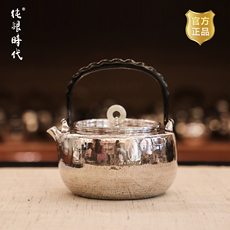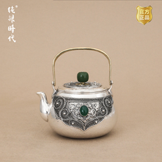 纯银时代 豆荚提梁纯银烧水壶足银999纯手工煮茶壶家用中号750ml