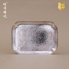 纯银时代 四方葵口银盘足银999高端干泡台茶盘银壶承果盘茶托壶托