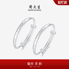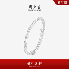 周大生足银S990手镯繁花似锦实心银镯子素圈活口生日礼送妈妈女友
