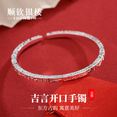 顺钦银楼S9999足银吉祥碎冰冰手镯女碎冰吉祥新中式百搭开口银镯