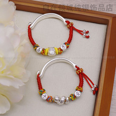 顺钦银楼S9999足银手镯足银镯子吉言国潮情侣款手环汉服配饰礼