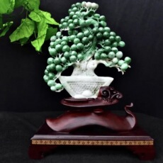 缅甸天然A货玉石翡翠孤品 精雕老坑满色阳绿万年长青发财树摆件