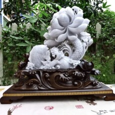 缅甸翡翠大摆件紫底精雕莲年有鱼摆件荷花鱼客厅摆饰一品清莲8.07