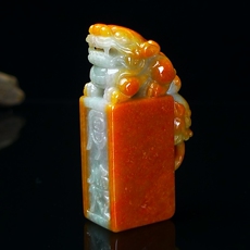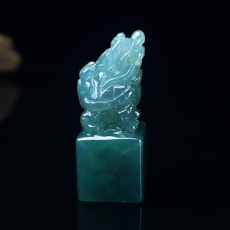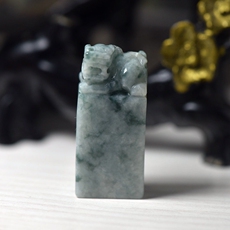 缅甸天然翡翠A货印章玉石 冰润浅绿翡翠貔貅印章摆件 篆刻代刻字