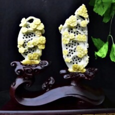 缅甸翡翠缕空精雕梅花小精品摆件黄翡招财进宝喜庆橱柜摆饰0.26kg